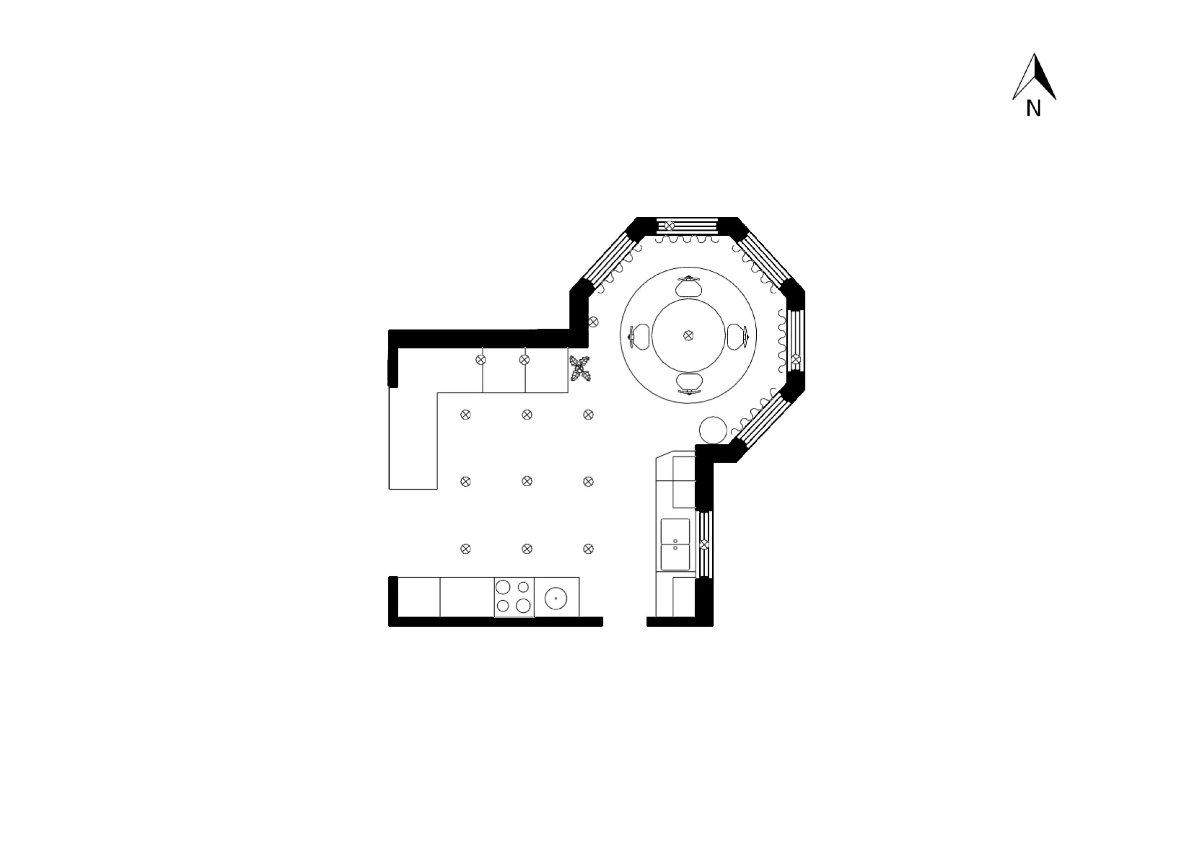2D (B/W) floor plan with the furniture positioned